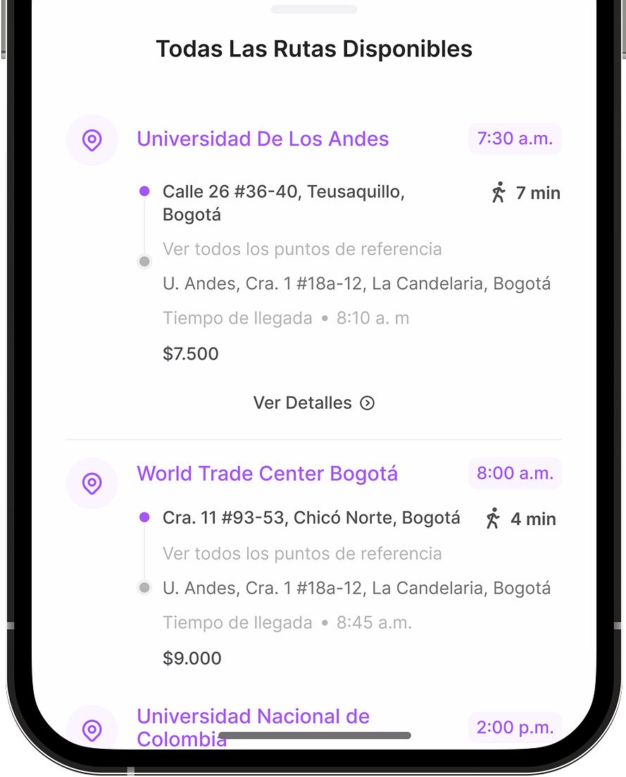 Busca y selecciona la ruta que mejor se adapte a tu destino y horario.